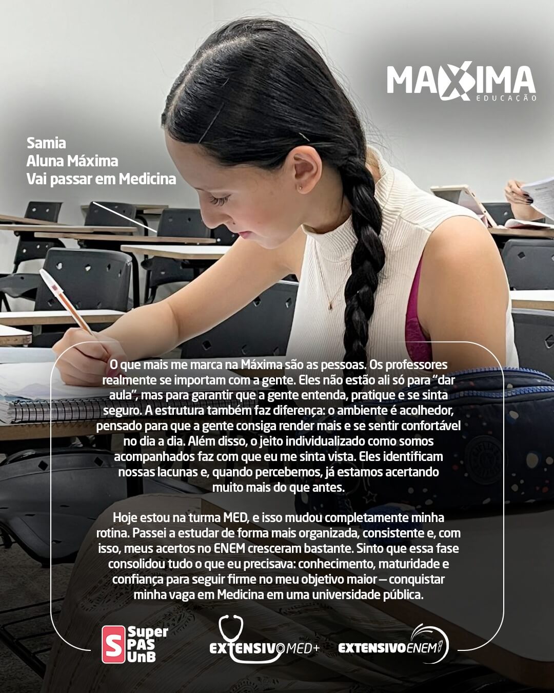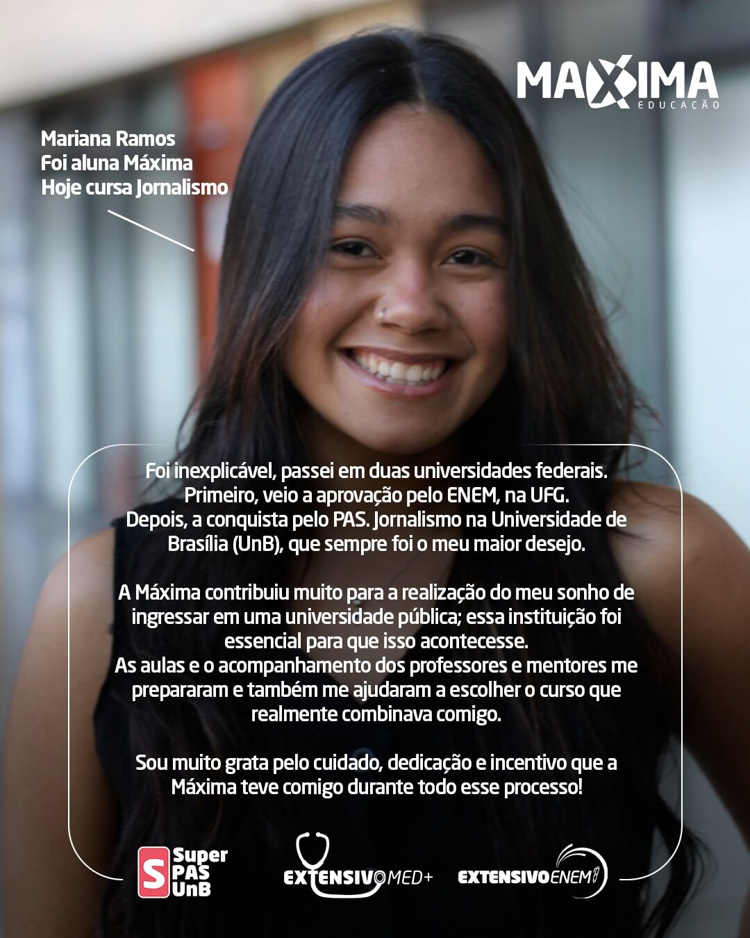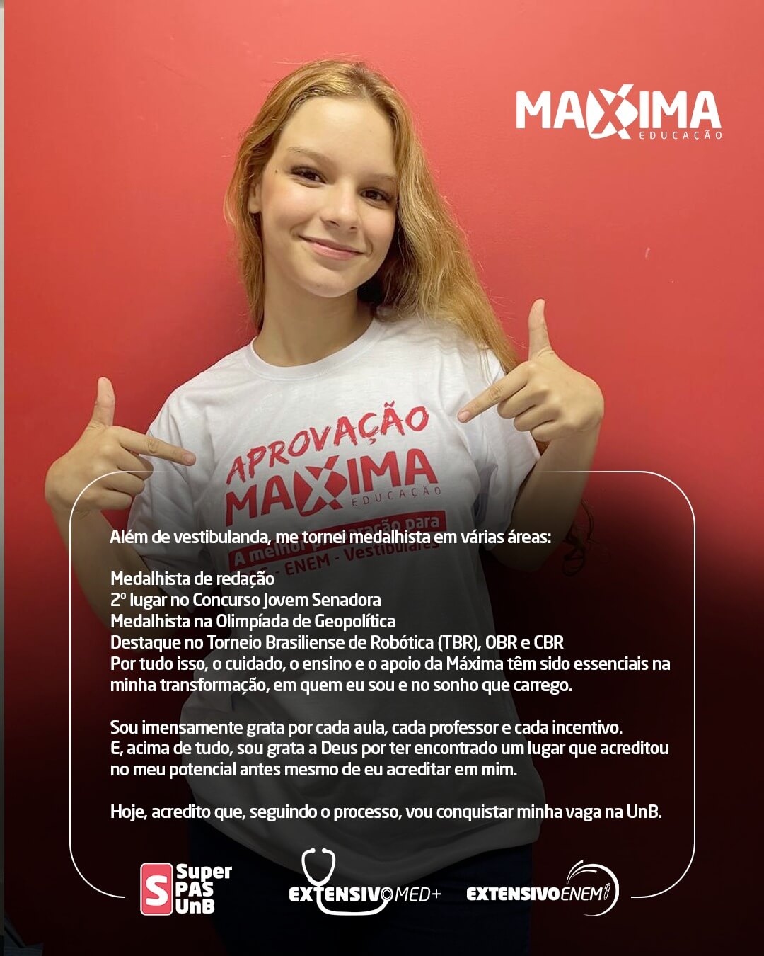 Nossa história é escrita com o sucesso dos nossos alunos. Confira o resultado de quem confiou na metodologia Máxima e conquistou a vaga, pelo PAS-UnB, Enem ou vestibulares!!!