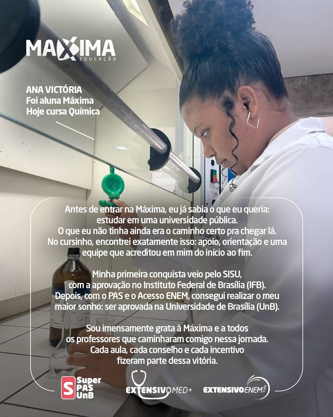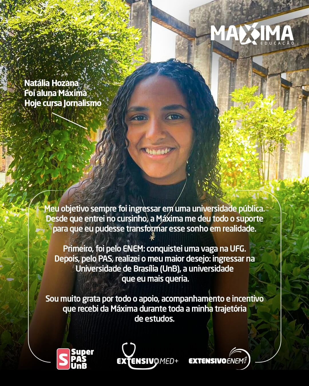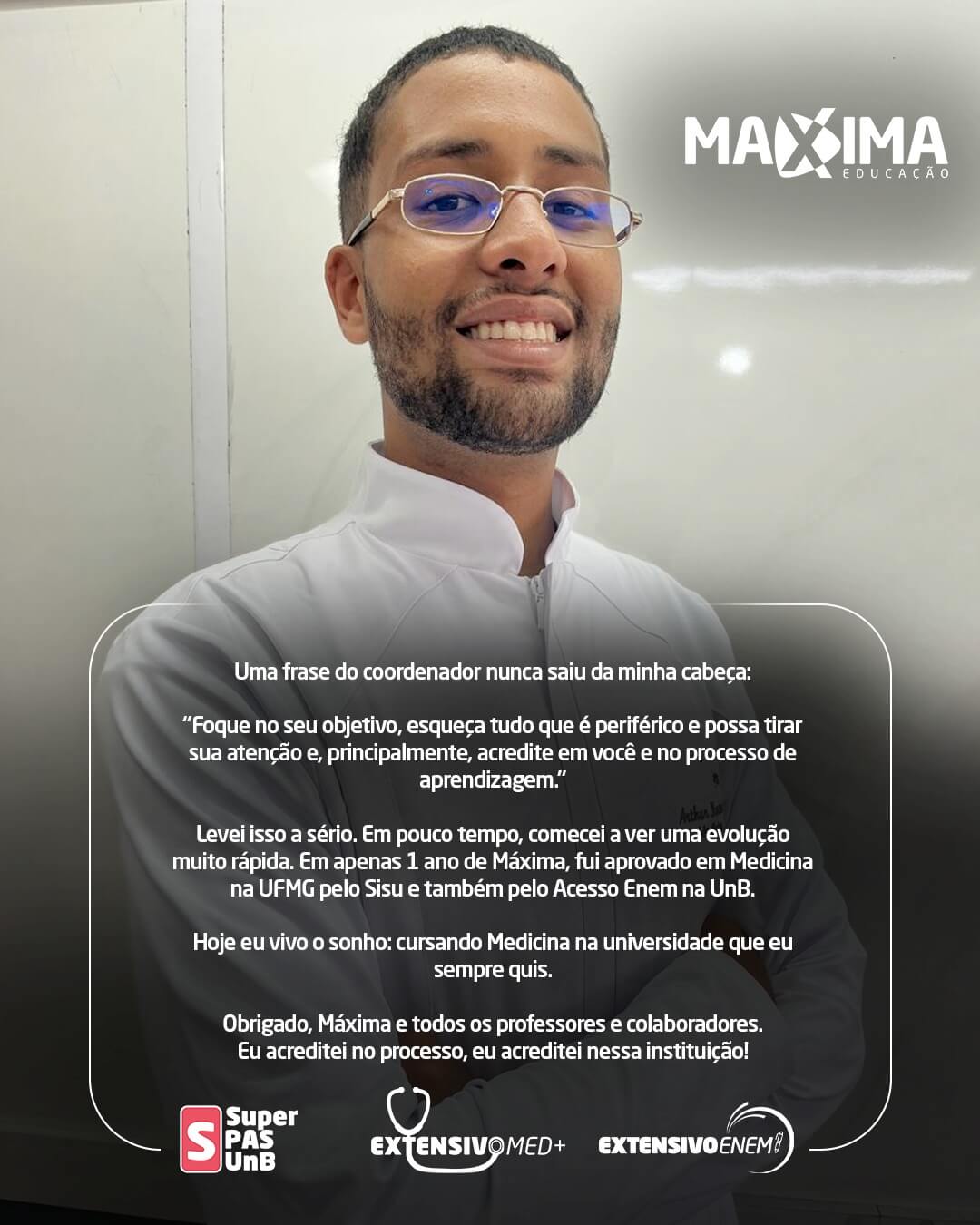 Nossa história é escrita com o sucesso dos nossos alunos. Confira o resultado de quem confiou na metodologia Máxima e conquistou a vaga, pelo PAS-UnB, Enem ou vestibulares!!!